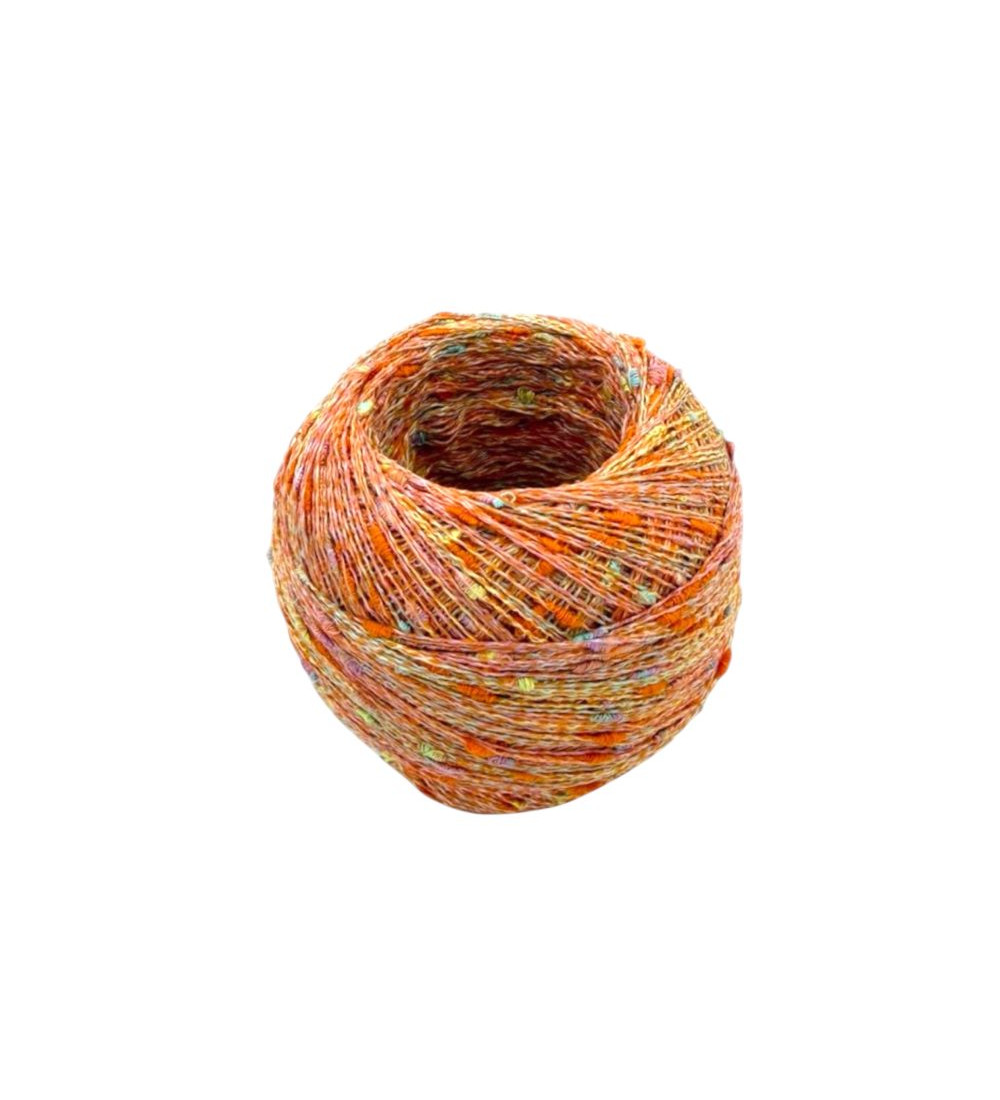 Nada más verlo entenderás su nombre: el “punto bodoque” hace referencia a un relieve con forma de pequeña esfera o bolita. Un hilado de textura irregular, muy en la línea del LINO FLAMÉ que tanto os gusta, pero reinterpretado en su versión de algodón. Su composición: 40 % de algodón reciclado, apostando por un tejer más consciente sin renunciar a la calidad ni al tacto; el 20 % de nylon es necesario para aportar la resistencia y consistencia necesarias para que el tejido resulte fluido y muy agradable.