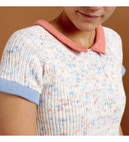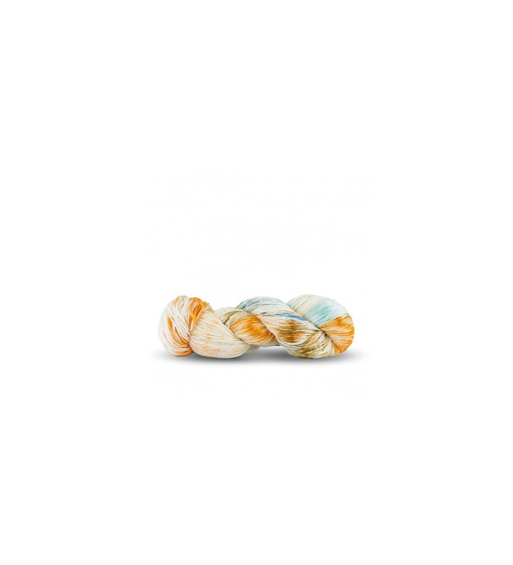 Un hilo completamente único, ya que su estampado semiartesanal es distinto en cada madeja. Se trata de un algodón 100% de alta calidad, peinado y de fibra larga, con un toque muy suave. Es perfecto para combinar con otros estampados o para contrastar con tonos lisos.