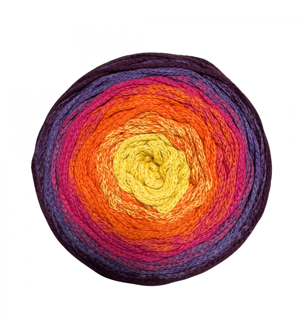 Este Cotton Air tiene grosor de 1mm y por ello es más ligero que el actual de 5 y de 2,5mm, así que tus proyectos pesarán menos. Como los otros Cotton air, está compuesto 100% de materiales reciclados y ecológicos, permitiéndonos seguir apostando por el cuidado del medio ambiente. Su carta de color incluye 7 espectaculares combinaciones: desde transiciones suaves hasta contrastes intensos para conseguir un estampado multicolor, vibrante y único. Su formato CAKE en ovillos de 250 gramos y 220 metros es la opción ideal para tus creaciones y aporta comodidad extra: el ovillo viene listo para usarse, permitiendo disfrutar de su degradado desde el primer momento.