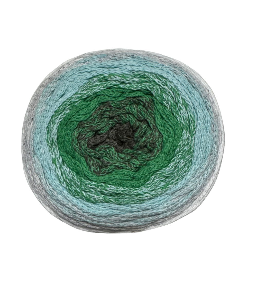 Este Cotton Air tiene grosor de 1mm y por ello es más ligero que el actual de 5 y de 2,5mm, así que tus proyectos pesarán menos. Como los otros Cotton air, está compuesto 100% de materiales reciclados y ecológicos, permitiéndonos seguir apostando por el cuidado del medio ambiente. Su carta de color incluye 7 espectaculares combinaciones: desde transiciones suaves hasta contrastes intensos para conseguir un estampado multicolor, vibrante y único. Su formato CAKE en ovillos de 250 gramos y 220 metros es la opción ideal para tus creaciones y aporta comodidad extra: el ovillo viene listo para usarse, permitiendo disfrutar de su degradado desde el primer momento.