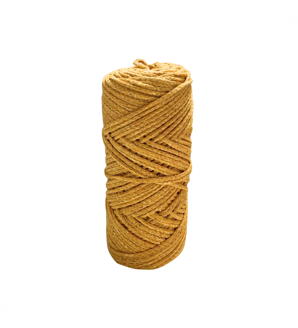65% Algodón reciclado - 35% Poliéster reciclado con glitter 100 gramos/90 metros 1mm Agujas/ganchillo 5-6 mm |