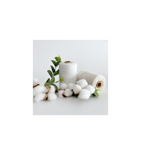 Hilo de algodón reciclado producido de manera sostenible con un aspecto rústico, destaca por su versatilidad y tanto se puede usar para macramé, telar, decoración, scrap...