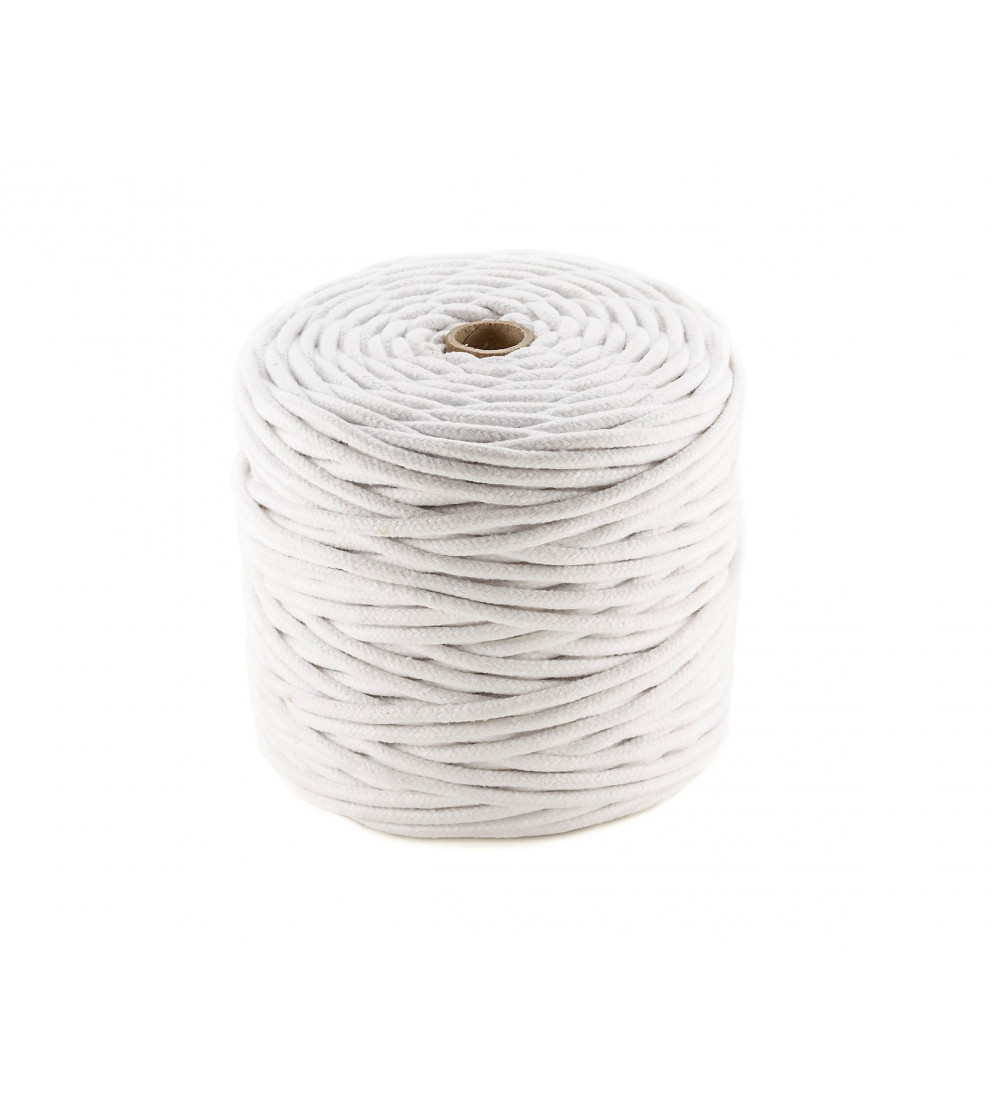 Aplicaciones: La cuerda de algodón trenzada y rellena, también de algodón, en su color natural blanco, sirve para trabajos que requieren mucha resistencia, ya que al estar rellena también en el interior puede soportar peso. Se usa para asas de bolsos, decoraciones, trabajos de macramé...