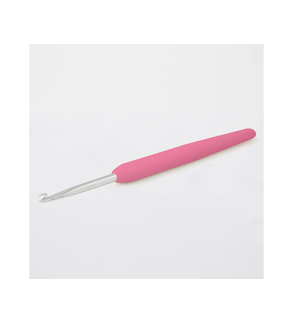 Con punta de aluminio y una capa deslizante que permite que los hilos y lanas se deslicen con mucha suavidad. Mango de silicona suave y resistente, ergonómico.