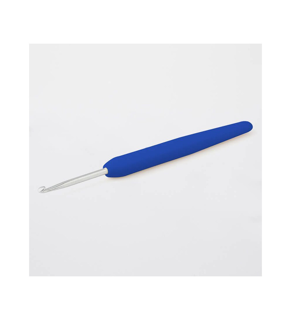 Con punta de aluminio y una capa deslizante que permite que los hilos y lanas se deslicen con mucha suavidad. Mango de silicona suave y resistente, ergonómico.
