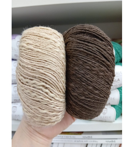 Isla es un hilo flameado compuesto por algodón y lino que confiere a la prenda un relieve y acabado muy personal. Está compuesto por 4 cabos enrollados entre sí que crean una hebra fina y elegante con efecto original y diferente. Su composición hace que sea suave y agradable de llevar gracias al algodón, mientras que el lino le da un toque rústico. Es perfecto para prendas frescas de verano, tops calados, chales y accesorios como bolsos o bisutería.