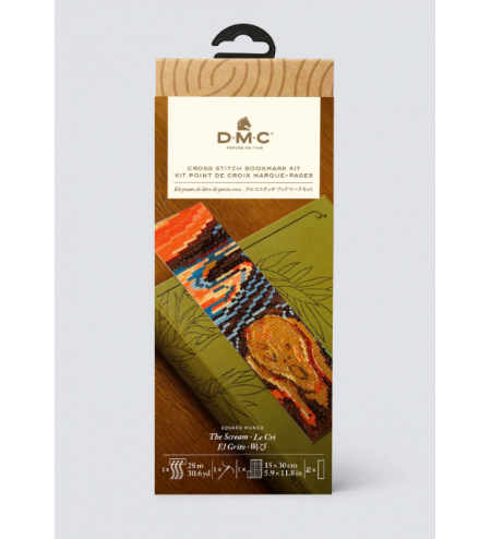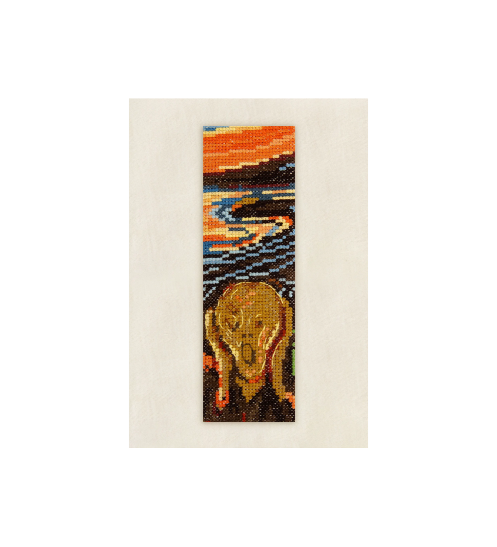 Recrea una sección de la obra El Grito de Edvard Munch en punto de cruz con este kit avanzado de marcapáginas.