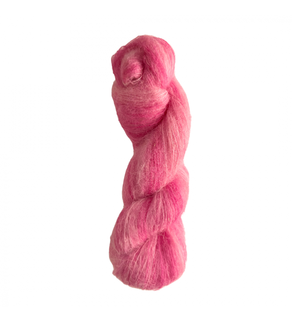Mohair se puede tejer solo, a dos hebras o mezclado con cualquier otro hilo, desde lana, algodón, bambú... Es esponjoso, cálido, etéreo. Se presenta en una madeja de 50 gramos y 450 metro, con lo que una te da para tejer un chal. Este mohair viene con la garantía de cumplimiento con el bienestar animal - MOHAIR NON MULESED WOOLS.