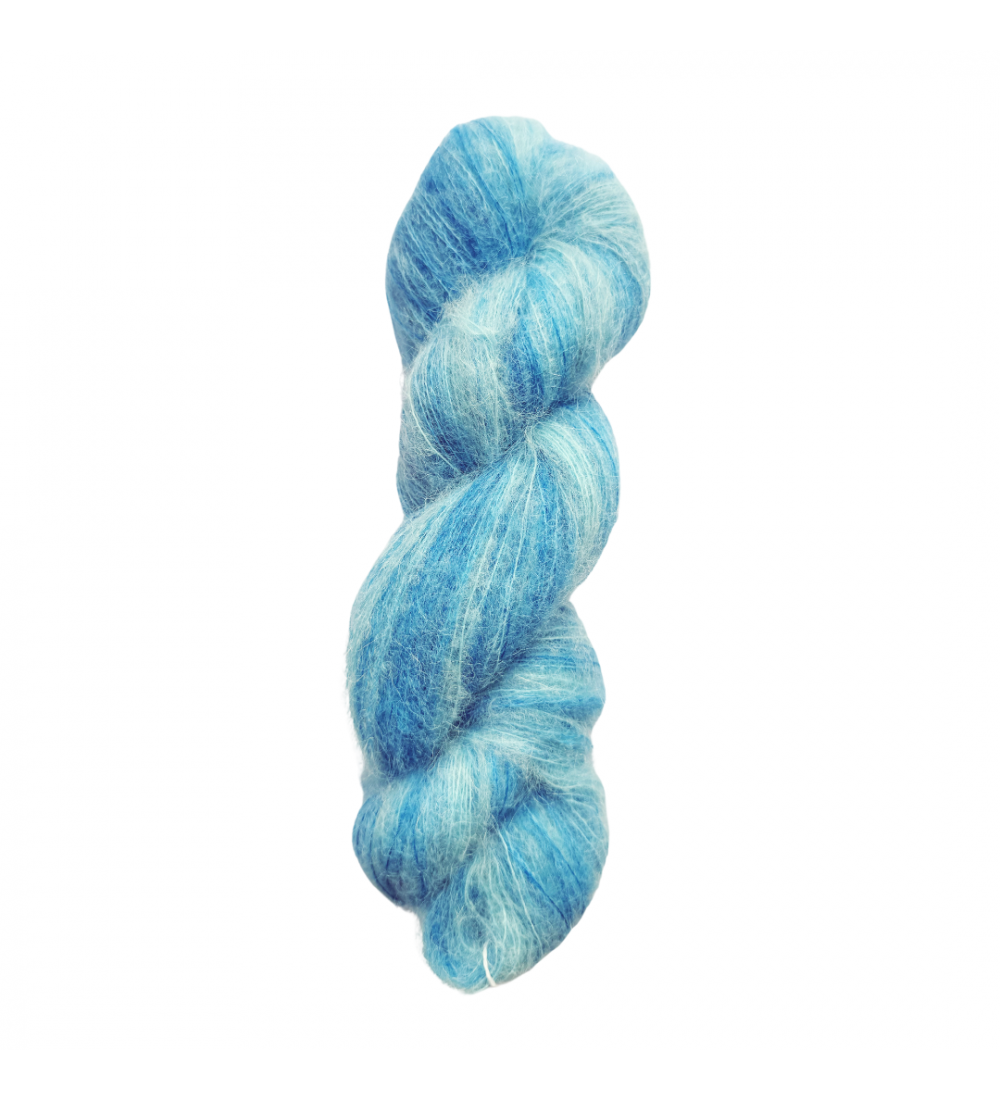 Mohair se puede tejer solo, a dos hebras o mezclado con cualquier otro hilo, desde lana, algodón, bambú... Es esponjoso, cálido, etéreo. Se presenta en una madeja de 50 gramos y 450 metro, con lo que una te da para tejer un chal. Este mohair viene con la garantía de cumplimiento con el bienestar animal - MOHAIR NON MULESED WOOLS.