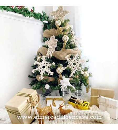 El hogar se viste con el crochet, el punto y el macramé más navideño. Los proyectos más actuales y decorativos realizados por las diseñadoras más actuales. Accesorios para el árbol de Navidad con un toque nórdico, bajo platos modernos y muy decorativos, coronas de Navidad, calendario de Adviento que son pequeños calcetines a rayas, arbolitos tricolor, el Belén amigurumi, la irresistible niña Noel, conjunto de cuello y gorro con un toque brillante, bajo árbol a ganchillo, plaid para el sofá... y mucha ideas más.