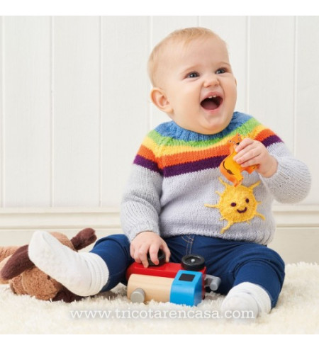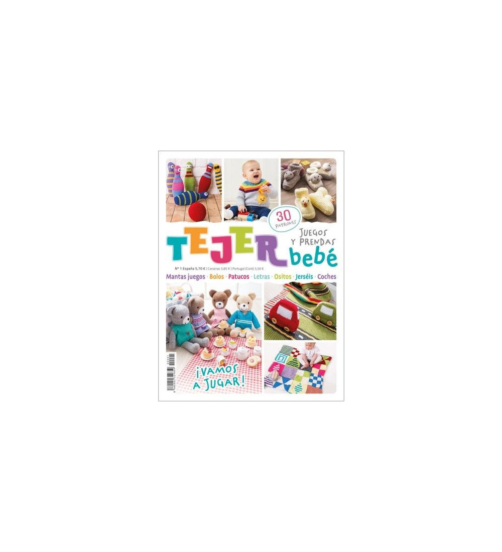 25 modernos proyectos de juegos, mantas de juego y prendas para el bebé. 48 páginas a todo color con fotografías, explicaciones y patrones paso a paso. Ositos para vestir, mantas de juego con coches de colores, dados y mantas de letras, patucos con cabeza de animalitos, divertido juego de bolos a ganchillos, jerséis llenos de color, cojín búho a ganchillo...