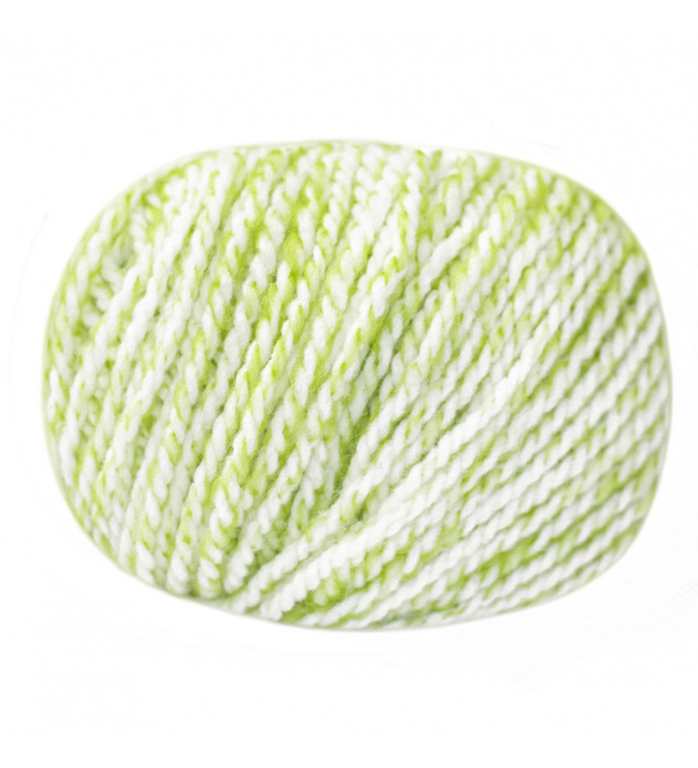 Con este divertido hilo, que tiene un 30% de lana, podrás tejer sweaters y cárdigans con colores combinados con blanco. Un grosor medio para tejer con agujas del 5.