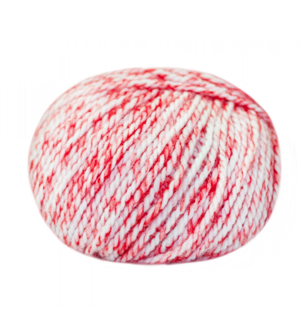Con este divertido hilo, que tiene un 30% de lana, podrás tejer sweaters y cárdigans con colores combinados con blanco. Un grosor medio para tejer con agujas del 5.